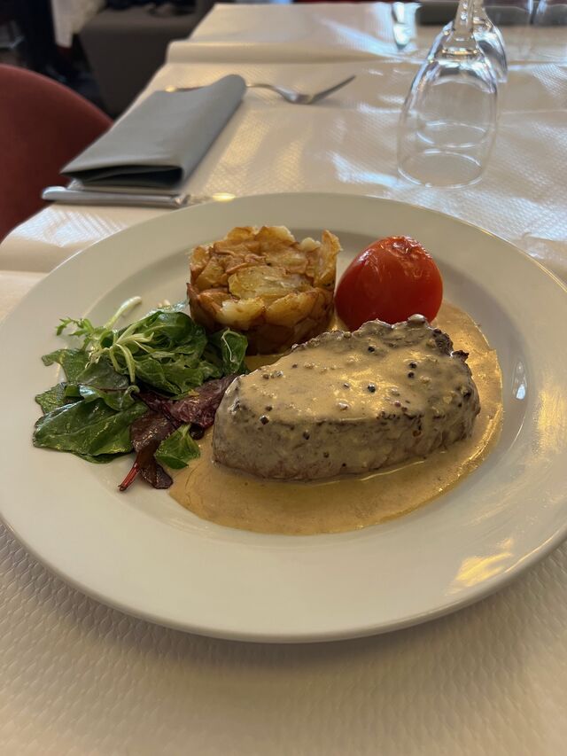 "Bonjour, juste apres notre sortie d avion et un long voyage de nuit, nous avions réservés une table pour le midi et avons beaucoup apprécié de retrouver une cuisine authentique et précise. Des plats simples, bien exécutés et de bons produits. C'était excellent. De plus service sympa, attentionné. Particulièrement des remerciements car en raison d un probleme de parking dysfonctionnel, ma femme a du m attendre au dela de la fermeture et l'équipe a été très gentille.